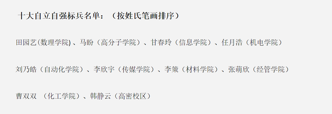 根据《太阳成tyc7111cc“十大自立自强标兵”评选办法》,我校自2020年6月启动第十六届“十大自立自强标兵”评选活动,经学生申请、学院推荐与公示、学校审核、网络展示、投票(易班)、专家评审等程序,现评选公示中,我院任月浩同学入选。