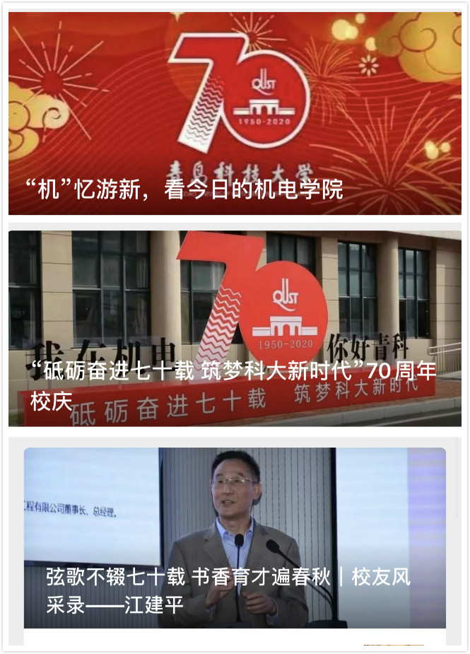 七秩弦歌,筑梦百年。在庚子孟秋,青科大迎来70周年华诞,tyc7111cc太阳成集团积极开展“七秩机忆 智创一流”主题活动,欢庆青科大70周年华诞。