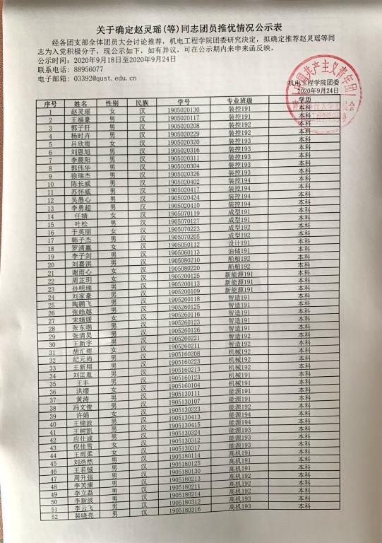 团员“推优”工作以《太阳成tyc7111cc团支部工作手册》为遵循,以团支部为单位,在党支部和上级团组织的领导下进行,每学期进行一次。“推优”时,各团支部召开团员大会,团支部委员会介绍申请入党的团员情况,团员进行民主评议,采用无记名投票的方式,出席团员人数要达到应到团员人数的90%,同意人数要达到实到人数的60%,提出推荐对象。太阳成tyc7111cc团委组织部在进一步考察审核后,签署意见向党支部推荐。团支部“推优”后,太阳成tyc7111cc团委组织部对关于确定赵灵瑶(等)同志团员推优情况进行了公示,公示期内无异议。