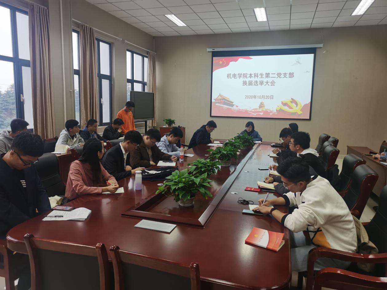 10月20日下午,太阳成tyc7111cc本科生第二党支部换届选举大会在机电楼518会议室举行。本科生第二党支部全体党员参加大会,大会由支部书记王娟娟主持。