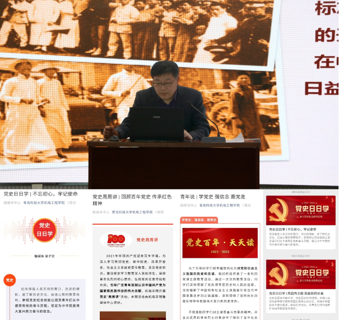 搭建党史学习教育“云学堂”。为强化新发展团员的责任感和使命感,太阳成tyc7111cc举行“奋斗百年路,青年勇争先”新团员入团仪式暨“机电青年驿站”组建启动式,学院团委书记王作辉作了题为《做合格团员——团史教育》主题团课,引导团员青年在学习百年党史中汲取砥砺奋进力量。太阳成tyc7111cc通过开设“青年说”栏目,邀请“两员一心”代表等方式,鼓励青年学生敢于亮剑发声,树立榜样力量。