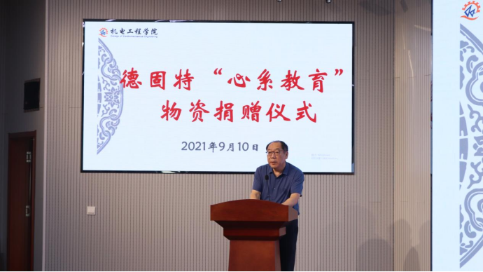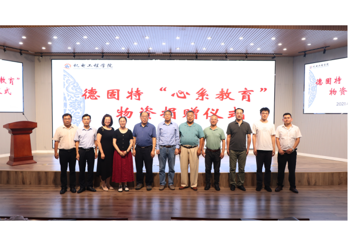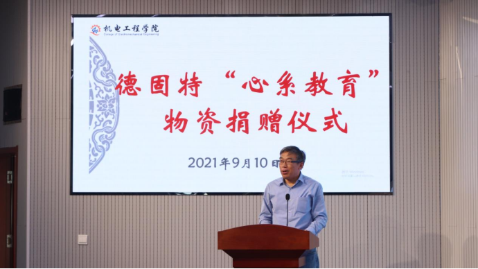 9月10日,适逢第37个教师节,太阳成tyc7111cc举办德固特“心系教育”物资捐赠仪式。青岛德固特节能装备股份有限公司董事长魏振文、副总经理崔建波、研发部部长金延超、综合部部长李红娟、学校原党委副书记张元利、tyc7111cc太阳成集团党委书记孙立军、院长何燕及教师代表参加活动。