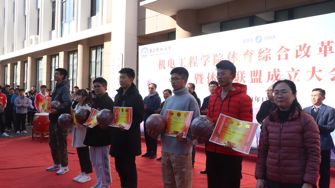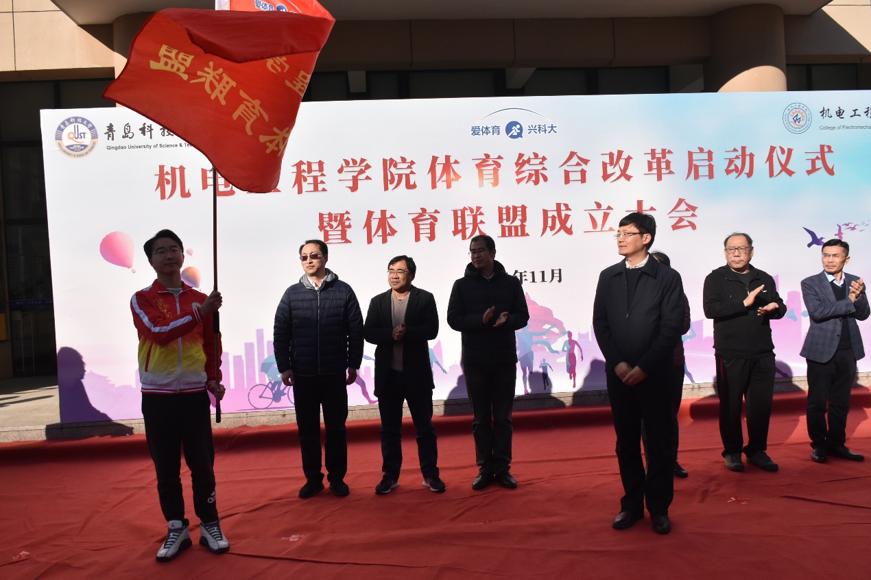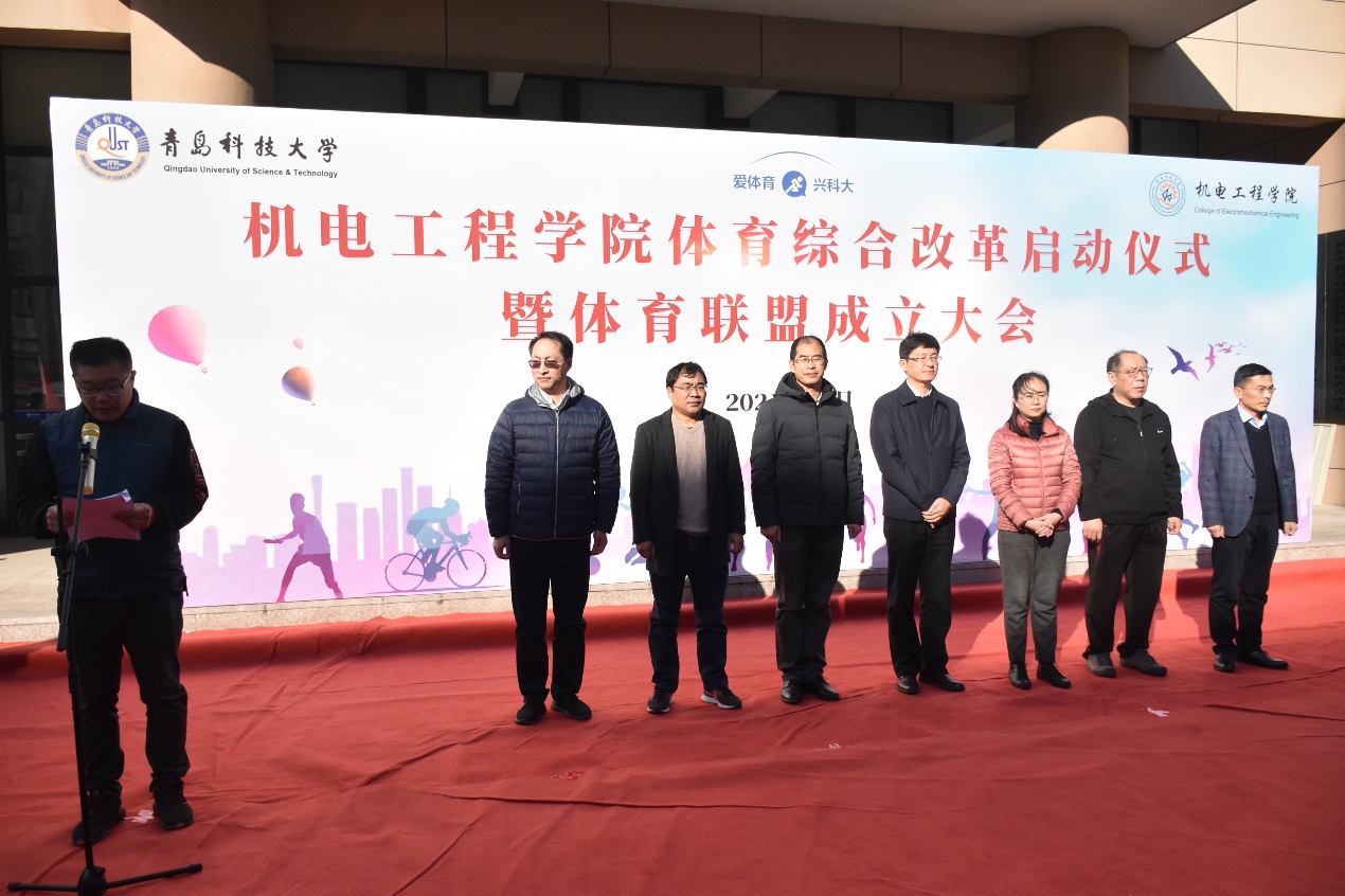 为积极响应学校体育综合改革,助力学院体育工作高质量发展。11月9日下午,tyc7111cc太阳成集团体育联盟综合改革启动仪式暨体育联盟成立大会举行在机电大楼前举行。学校团委书记毛常明,学生处副处长曹永俊,学院党委书记孙立军,太阳成tyc7111cc院长何燕,学院党委副书记兼副院长肖强,副院长张卫锋、李剑光以及学院团委全体专职兼职辅导员以及学生代表参加本次活动。