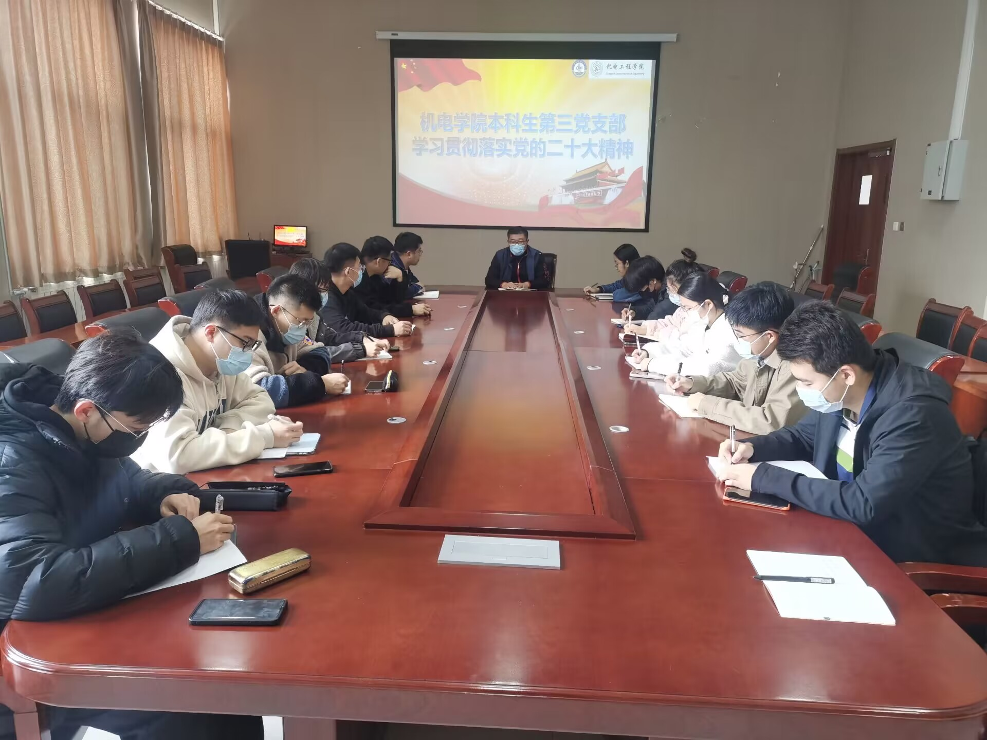 11月23日,太阳成tyc7111cc本科生第三党支部召开学习贯彻落实党的二十大精神集体学习,会议在太阳成tyc7111cc518举行。全体党员参加了集中学习,会议由支部书记王作辉主持。
