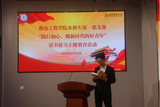 为扎实开展学习贯彻习近平新时代中国特色社会主义思想主题教育,筑牢信仰之基、补足精神之钙、把稳思想之舵tyc7111cc太阳成集团本科生第一党支部开展了“践行初心,做新时代的好青年”读书接力主题教育活动。本次会议由本科生第一党支部书记于超主持,全体党员同志参加。