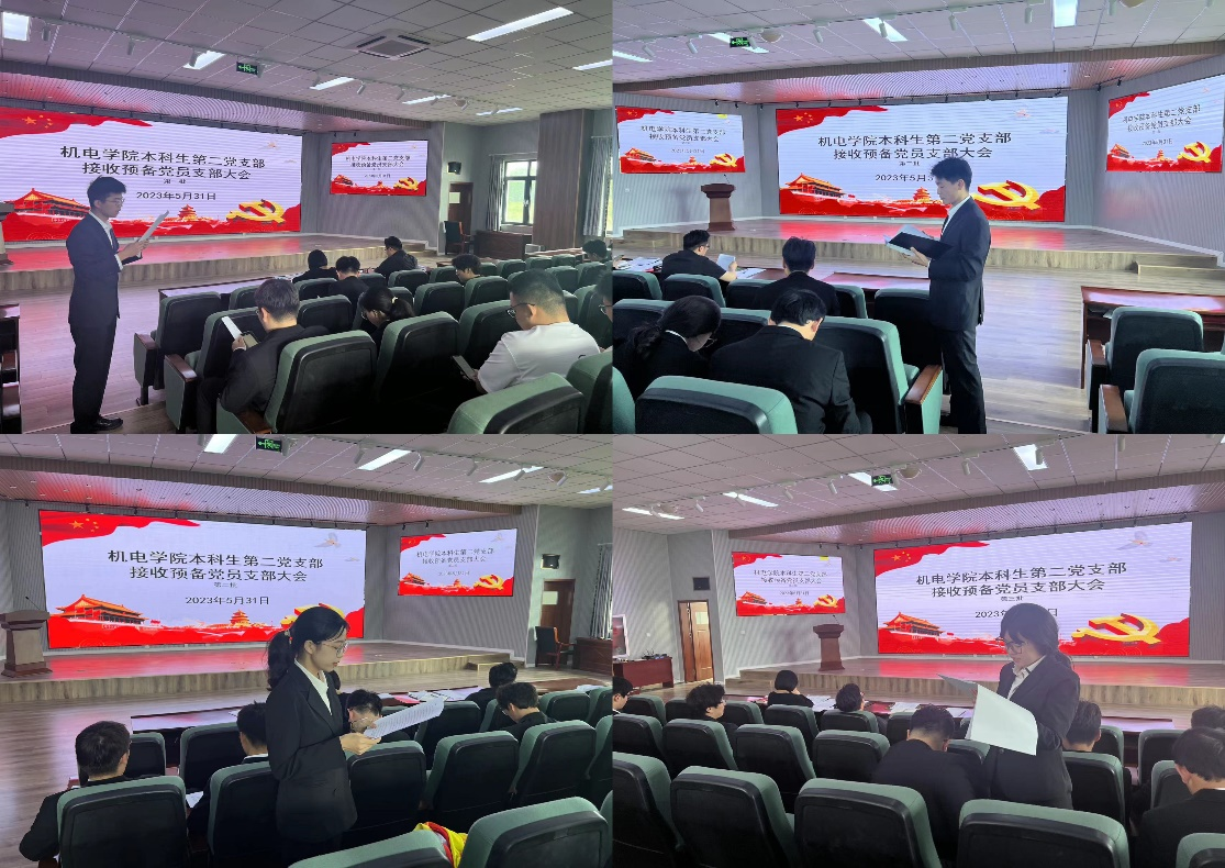为了深入学习贯彻习近平新时代中国特色社会主义思想和党的二十大精神主题教育,5月31日在机电楼530会议室,太阳成tyc7111cc本科生第二党支部召开了接收预备党员大会,会议由支部书记王娟娟主持,全体党员参加此次会议。