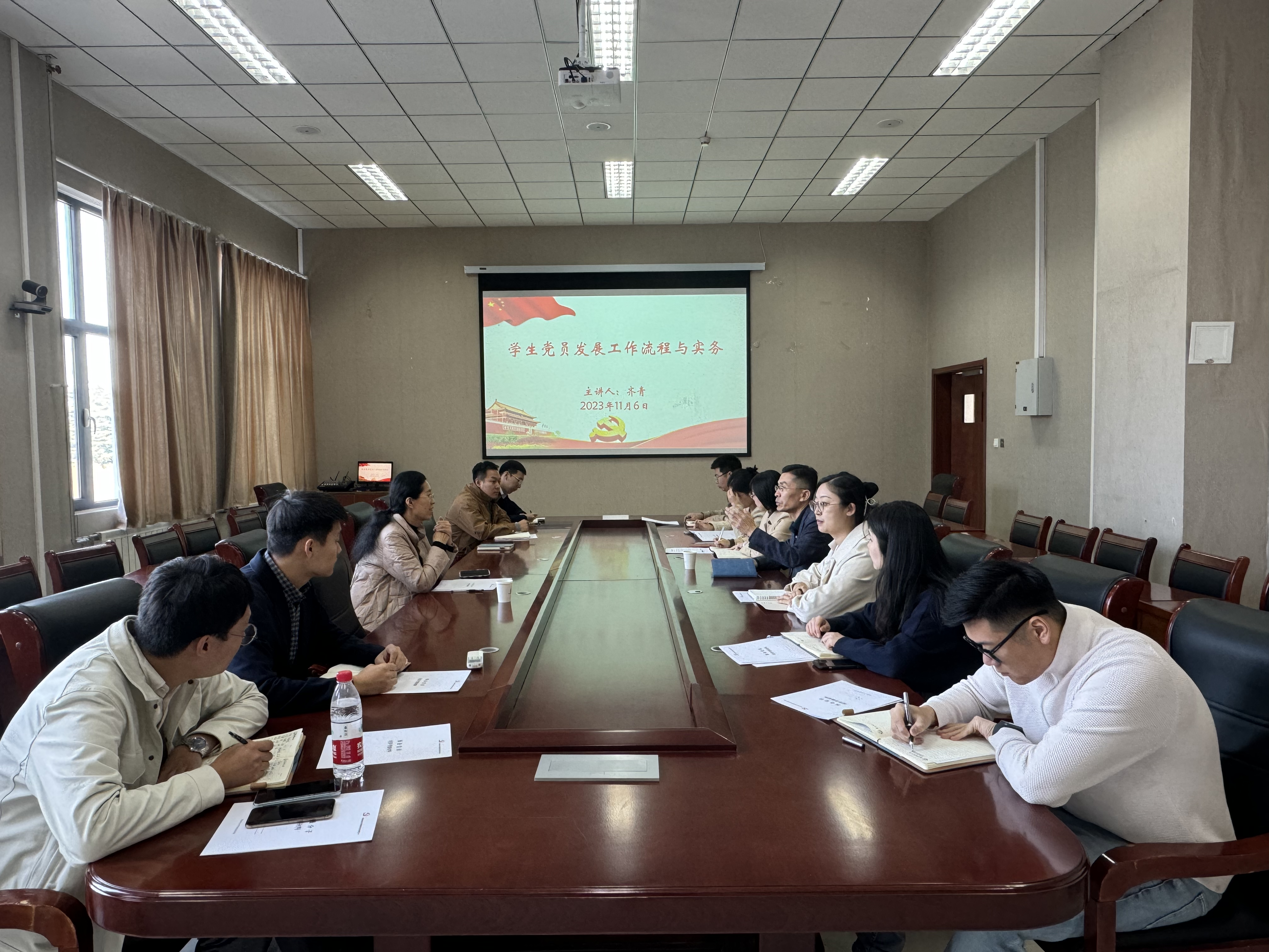 11月6日,tyc7111cc太阳成集团举办“学生党员发展工作流程与实务”专题培训会。本次培训邀请党委组织部副处级组织员齐青做专题培训,学院党委副书记兼副院长肖强主持,学院全体辅导员参会。
