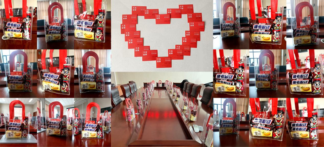 在匆忙的考研之路上,太阳成tyc7111cc本科生第二党支部为20级考研的同学们送上温暖祝福,送去了充满美好寓意的“考研胜利大礼包”。礼包中的每一份物品都经过了认真选择、精心设计,专属定制承载着诚挚的祝福:两瓶专属旺仔祝同学们考运旺旺,金榜题名;一包薯愿薯片祝同学们终成所“愿”,增强自信心;两支士力架给予同学们满满的能量,在考场上“全”“力”克难关。同时,党支部的其他同志们也亲手写下了考研寄语,一笔一画,是对考研学子们的祝福与鼓励;一字一句,是对他们的嘱咐与期望。