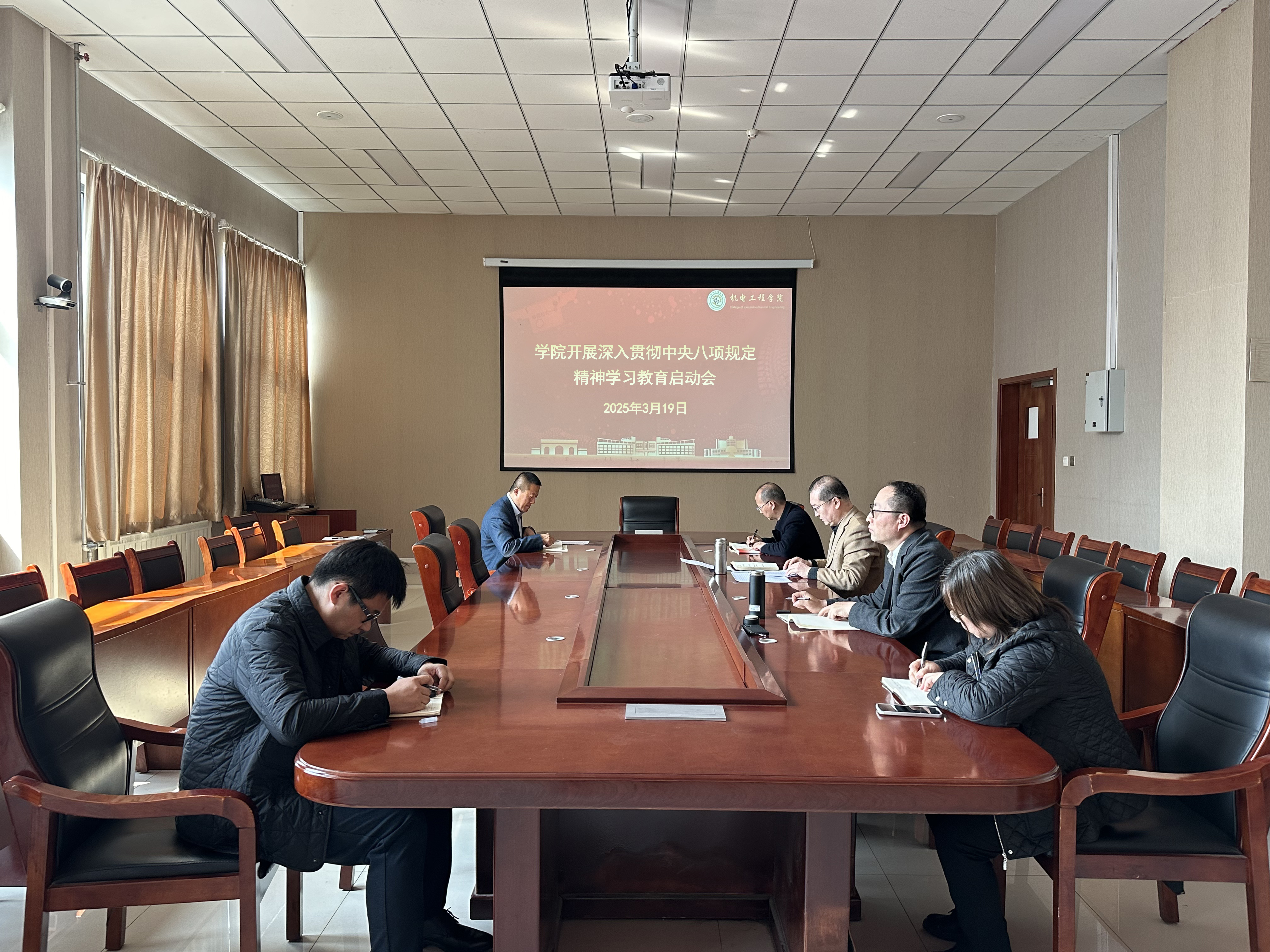 3月19日下午,tyc7111cc太阳成集团在机电楼D3-518会议室召开深入贯彻中央八项规定精神学习教育启动会。会议由学院党委书记任允晓主持。