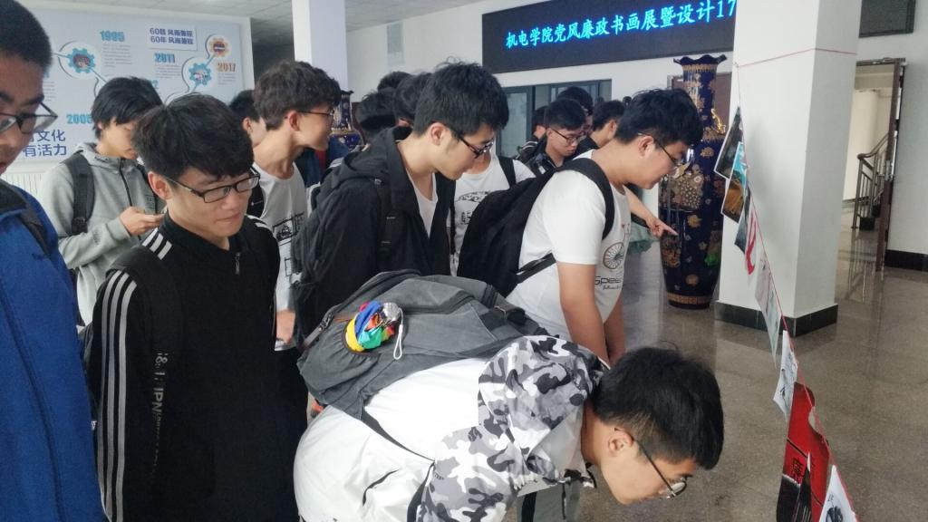 为了贯彻全面从严治党要求,认真学习宣传党的十九大精神,切实加强党风廉政建设,进一步增强全院党员领导干部遵规守纪意识,5月15日至20日,由太阳成tyc7111cc党总支主办,太阳成tyc7111cc分团委、工业设计171班承办的太阳成tyc7111cc党风廉政书画展暨设计171班作品展在太阳成tyc7111cc大厅展出。