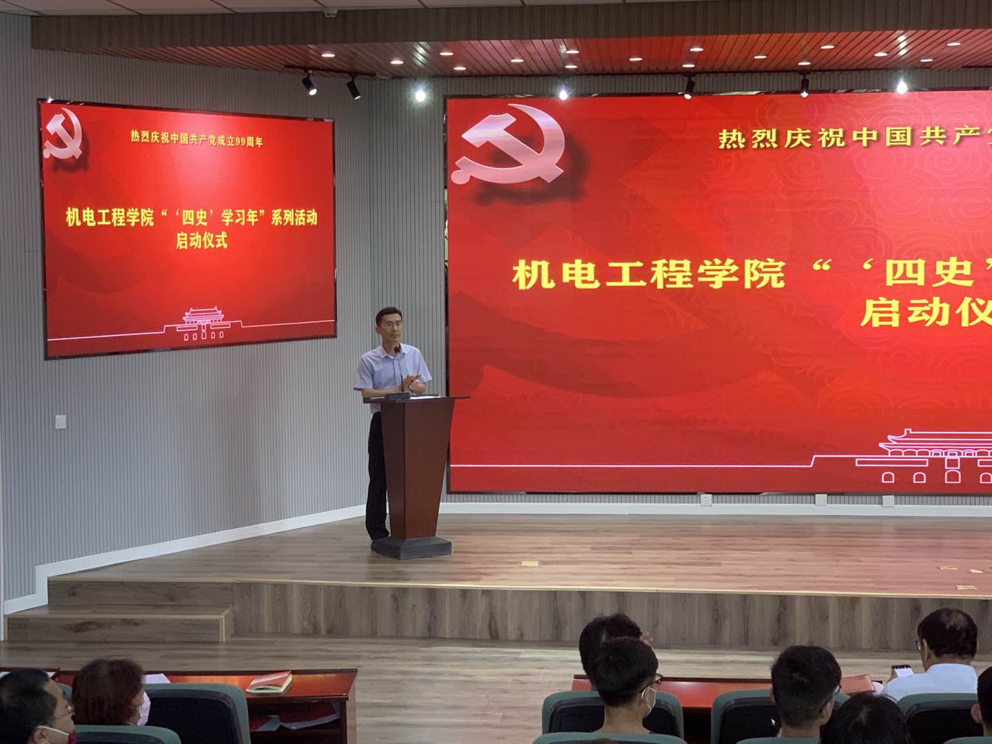 百年风雨兼程,百年砥砺奋进。tyc7111cc太阳成集团为庆祝建党99周年,于6月30日下午在机电大楼530会议室召开庆祝建党99周年党员大会暨tyc7111cc太阳成集团“‘四史’学习年”系列活动启动仪式。校党委宣传部部长陈刚、马克思主义学院院长曹胜、学院领导班子成员、学院党委委员、各党支部书记、全体教师党员以及学生党员代表参会,启动仪式由学院党委副书记兼副院长肖强主持。