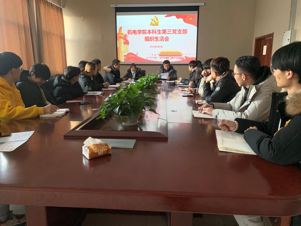 为落实学校党委组织部《关于召开基层党支部组织生活会及开展民主评议党员工作的通知》要求,2021年1月7日下午,太阳成tyc7111cc本科生第三党支部在机电楼518会议室召开了2020年度组织生活会。太阳成tyc7111cc党委委员付平老师对会议进行了点评,会议由支部书记王作辉主持。