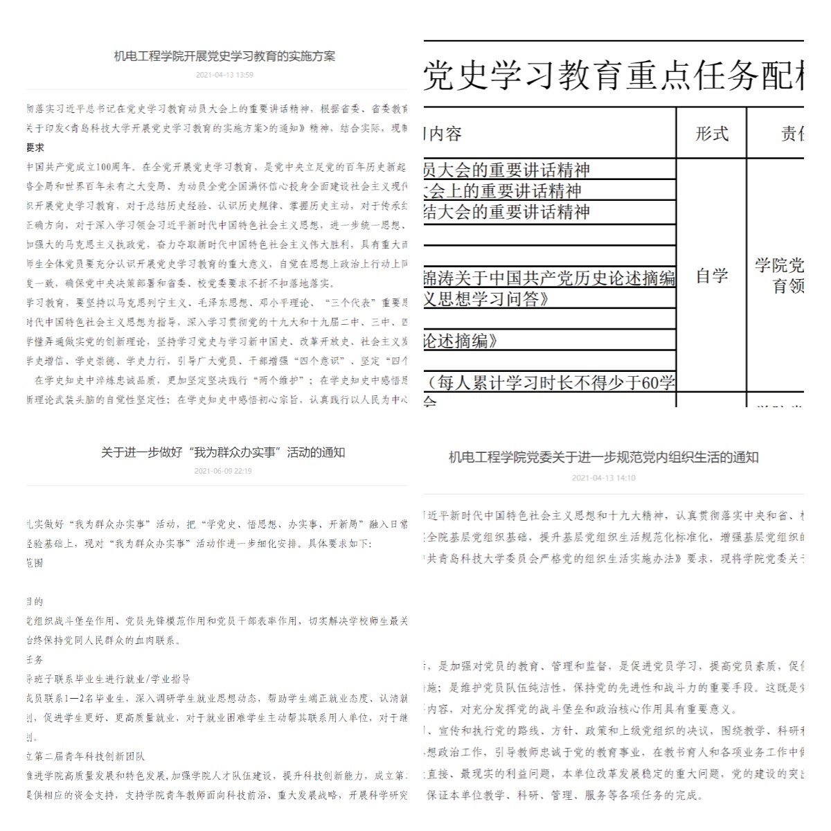 自党史学习教育开展以来,太阳成tyc7111cc党委坚持把其作为重要政治任务,认真贯彻落实有关决策部署和学校工作要求,立足工作实际,坚持规定动作做到位、自选动作有特色,多措并举,扎实推进,务求取得实效,相继出台了《tyc7111cc太阳成集团开展党史学习教育的实施方案》《tyc7111cc太阳成集团开展党史学习教育重点任务配档表》《tyc7111cc太阳成集团党委关于进一步规范党内组织生活的通知》《tyc7111cc太阳成集团关于进一步做好“我为群众办实事”活动的通知》等,为学院开展党史学习教育明确了时间表、路线图、任务书,在开展党史学习教育进而迎接建党100周年过程中,学院党委始终坚持“四个联动”,扎实推动党史学习教育走深走实。