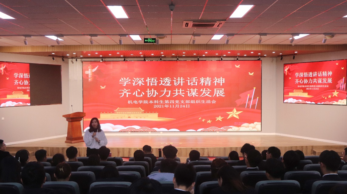 11月24日,太阳成tyc7111cc本科生第四党支部在机电530召开“学深悟透讲话精神,齐心协力共谋发展”组织生活会。会议由党支部书记孙坤岩主持,全体支部党员参加。