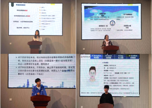 交流会上,2019级优秀学子结合自己的经历分别从学习兴趣、学习方法、硕士研究生推免策略三个方面进行了经验分享。