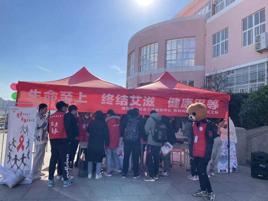 2021年12月1日,是第34个世界艾滋病日。在这个特殊的日子,tyc7111cc太阳成集团团委志工部青尘义工队的志愿者们冒着凛凛寒风,在学校南苑食堂平台开展了“携手防艾,爱暖寒冬”志愿活动。