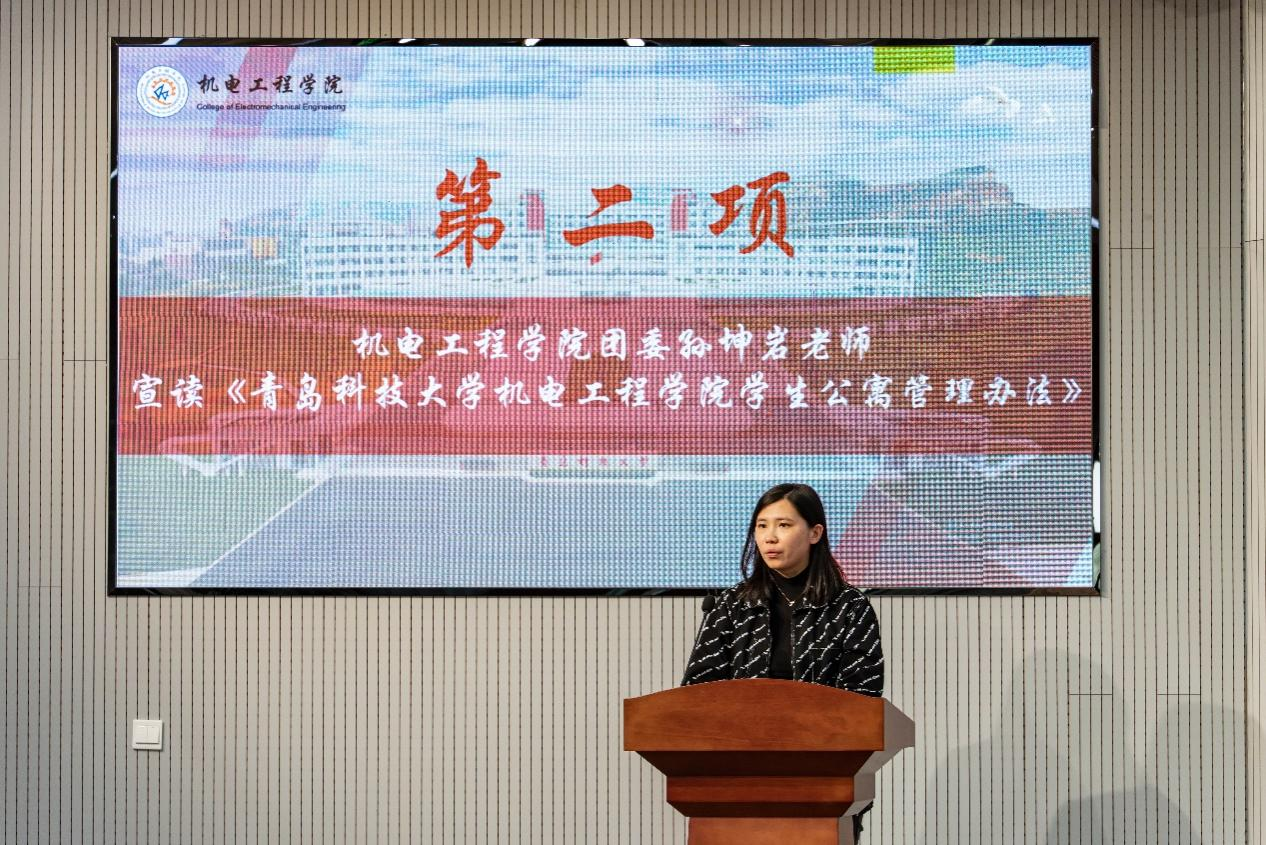 tyc7111cc太阳成集团团委孙坤岩老师宣读tyc7111cc太阳成集团学生公寓管理办法,为进一步加强学生公寓管理和服务工作,给学生创造一个安全、整洁、舒适的学习和生活环境,根据《普通高等学校学生管理规定》、《太阳成tyc7111cc学生管理规定》、《太阳成tyc7111cc学生宿舍检查细则》等文件精神,结合学校实际,特制定本规定。