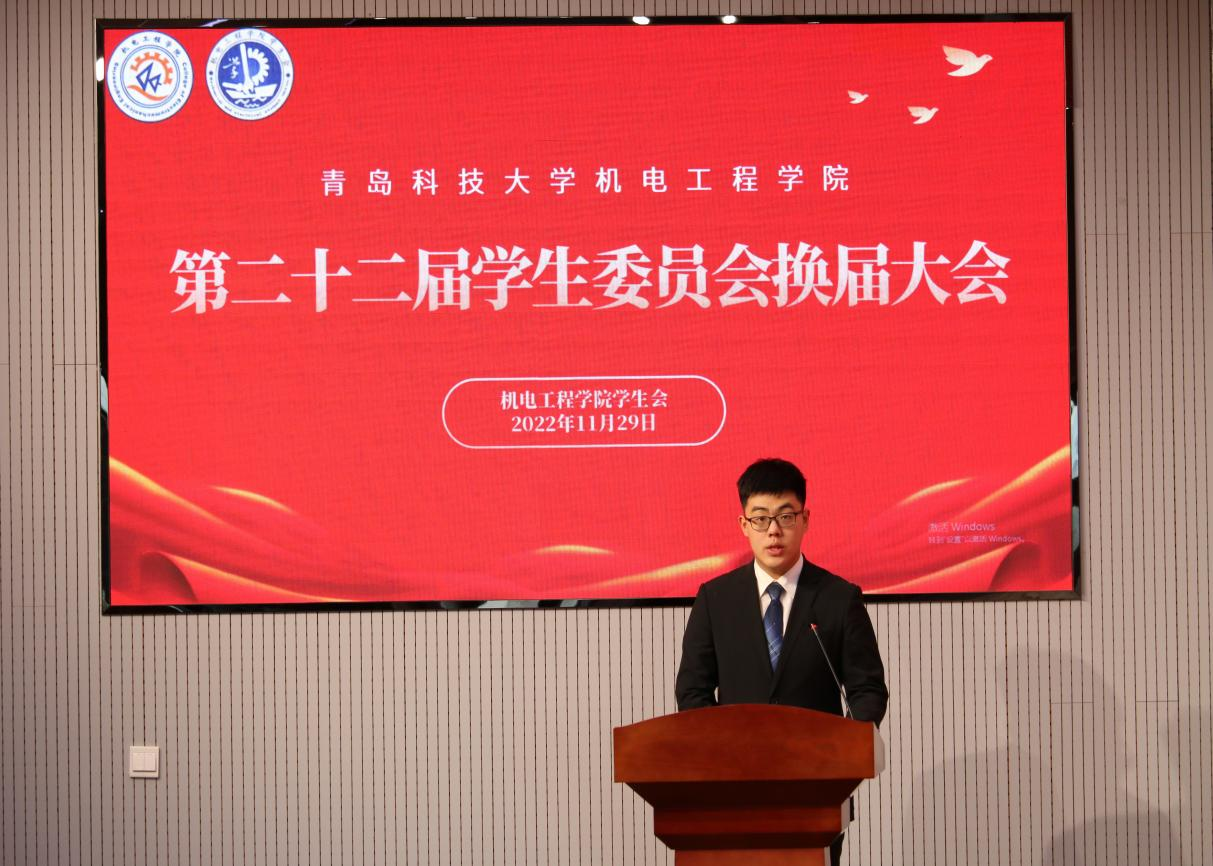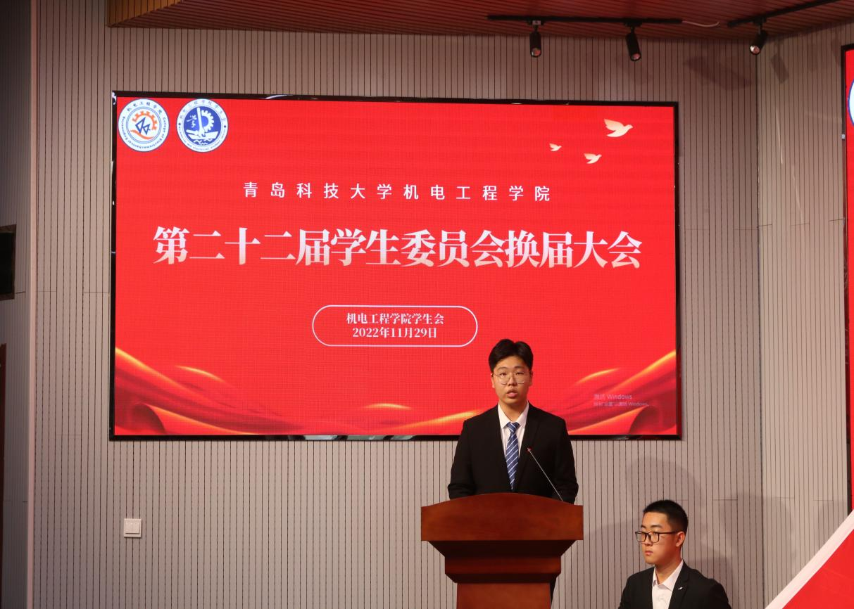 tyc7111cc太阳成集团第二十二届学生委员会执行主席全恩郅表态发言。