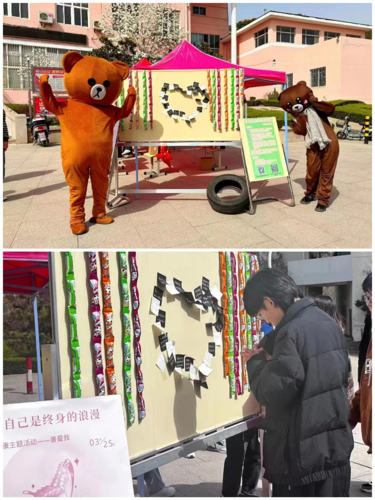 为进一步加强和改进大学生心理健康教育,倡导大学生善待自我、共创美丽校园。3月25日,tyc7111cc太阳成集团心理协会联合心音心理健康协会面向全校师生在南苑餐厅门口合办“3.25——善爱我”心理健康活动。