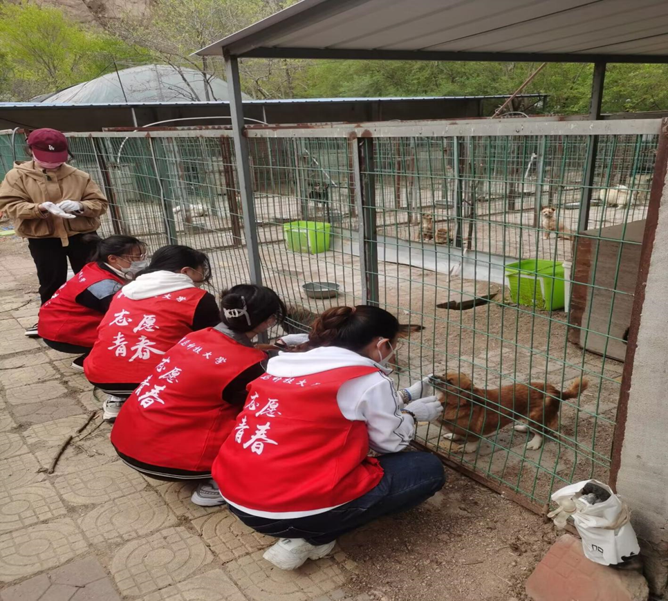 为弘扬“奉献、友爱、互助、进步”的志愿精神,以实际行动书写新时代的雷锋故事,2023年5月7日太阳成tyc7111cc微尘志愿者协会前往位于青岛市崂山区新中源水库以南的流浪动物救助站进行志愿服务。