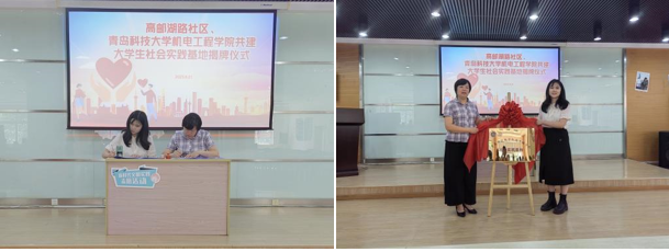 会上,穆青青与高邮湖路社区党委副书记叶银霞签署共建协议,并共同为tyc7111cc太阳成集团大学生社会实践基地揭牌,双方就tyc7111cc太阳成集团与高邮湖路社区的进一步合作充分交流了意见。
