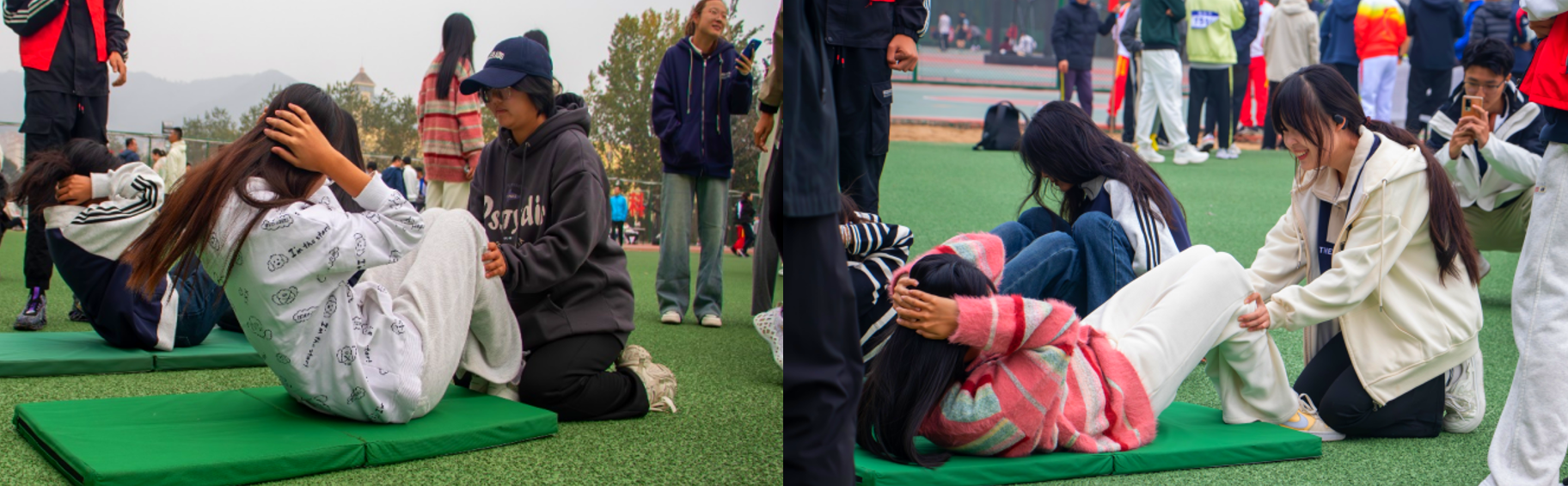 仰卧起坐—汗水与坚持的交响曲。随着比赛的开始,选手抱头躺下、起身,动作流畅而有力。这不仅是对身体素质的考验,更是对意志力的磨砺,他们用汗水和毅力诠释青春的奋斗姿态。