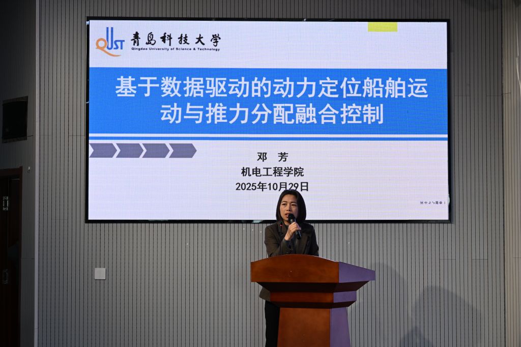 邓芳以“基于数据驱动的动力定位船舶运动与推力分配融合控制”为题作专题讲座。她指出,船舶动力定位等技术是践行我国海洋强国战略技术支撑。在报告中系统介绍了船舶动力定位系统,DP系统的组成,以及如何利用数据驱动技术提升船舶动力定位的精准度与稳定性。报告内容兼具理论深度与工程价值,激发了在场师生对智能控制前沿问题的广泛兴趣。