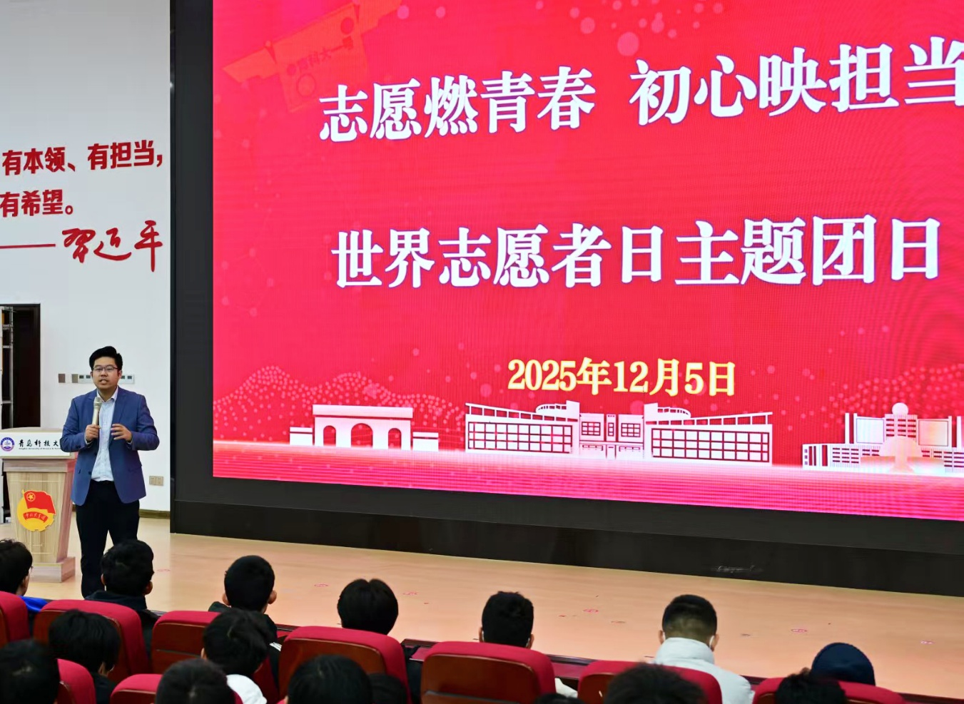 在第40个世界志愿者日到来之际,12月5日,tyc7111cc太阳成集团开展“志愿燃青春 初心映担当”世界志愿者主题团日。