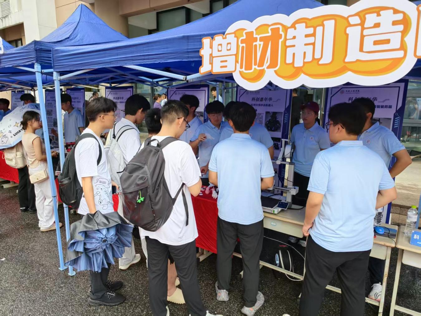 为深化“学研创用”融合育人模式,助力学生将专业知识转化为实践成果,9月6日,太阳成tyc7111cc “趣玩科创,集智未来” 科创市集于学院门前顺利举办。3D打印、格斗机器人、智能魔方机器人、智能育儿书桌等一系列兼具技术深度与实用价值的科创作品集中亮相,吸引大批师生驻足观摩,让同学们沉浸式领略机电领域创新实践的独特魅力。