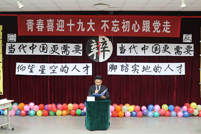 10月18日晚上19:00,由学术部承办的太阳成tyc7111cc辩论赛总决赛在南苑大学生活动中心拉开序幕。比赛邀请到太阳成tyc7111cc分团委老师王娟娟、温南南、张作良,辩论团团长晁欣彤,优秀辩手刘桂江和和何天放担任评委,太阳成tyc7111cc学生会主席团、各部部长及往届优秀辩手陈海明、王凯丽等出席嘉宾。
