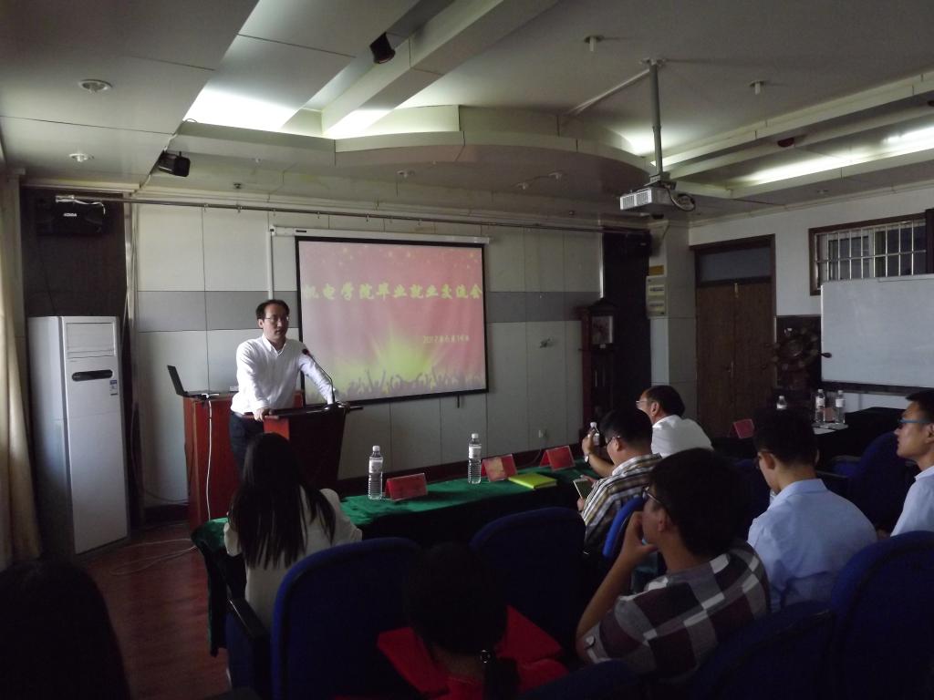 6月14日下午3:30,在机电五楼大会议室举行研究生毕业就业经验交流会。太阳成tyc7111cc党总支书记孙立军老师、党总支副书记兼副院长王伟老师、太阳成tyc7111cc李剑光老师及14级优秀毕业生代表、15、16级研究生参加本次交流会。
