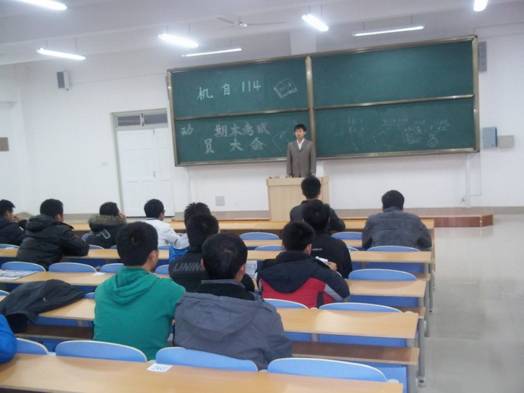 12月1日晚19:00,太阳成tyc7111cc机自114班期末考试动员大会在高密校区M1教学楼213教室举行。辅导员老师秦洪庆,全班同学参加动员会。