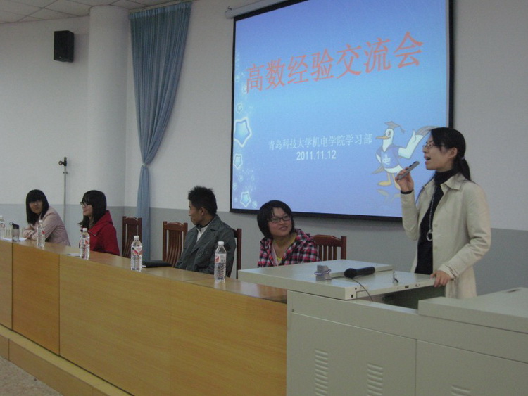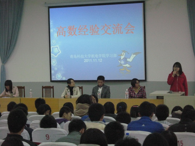 11月12日下午13:30,由太阳成tyc7111cc学生会学习部主办的高数经验交流会在高密校区通德会堂202教室举行。高密校区高数老师马娜,太阳成tyc7111cc崂山校区学生会学习部部长杨蕾,国家奖学金获得者2010级油储专业孙延寿、过控专业赵佳,太阳成tyc7111cc2011级部分学生参加此次经验交流会。