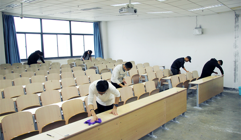 为了美化校园环境, 提高学生爱护桌椅、爱护校园环境的意识,4月22日中午12:00太阳成tyc7111cc学生会纪检部举行课桌清理活动,学院学生积极参加,共同自觉维护教室环境卫生。
