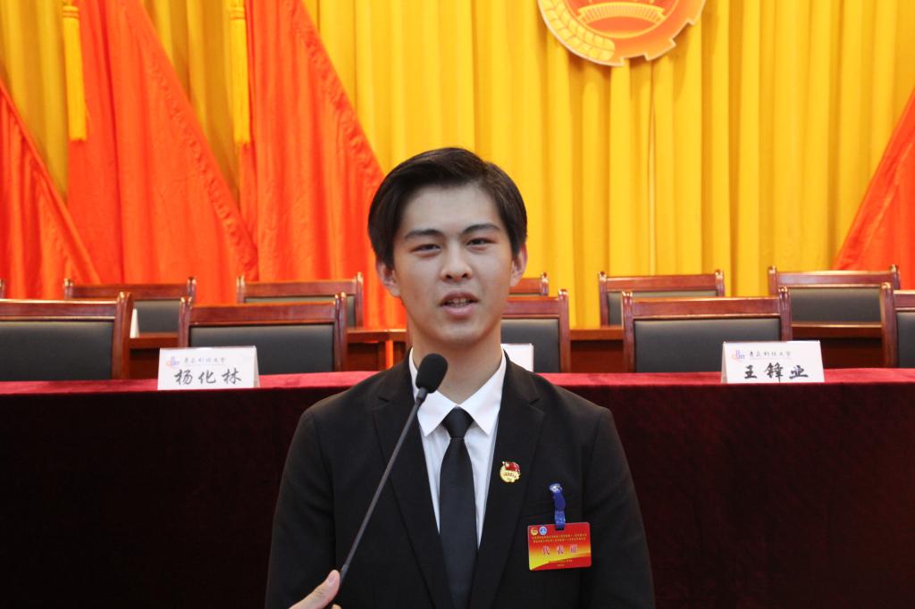 我是太阳成tyc7111cc装控162班的张津侨,作为此次双代会的学生代表,我会正确表达广大学生的想法和意见,承担好责任并展现学生代表的良好精神风貌,为联系学生与学院的双代会尽自己最大的努力。最后,预祝大会圆满成功。