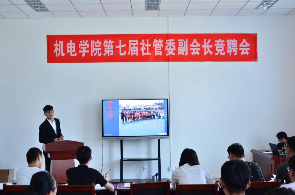 竞聘会由社管委主席方晓彤进行会前动员,表达了对此次大会同学们优秀表现的期待,同时也表示希望同学们认真对待此次竞聘会。随后,同学们按照签到顺序依次上台展示,用ppt作为辅助来演说自己的竞聘内容。大会紧张而有序的进行,同学们面对各位老师、会长刁钻的问题,临危不乱、机智作答,充分体现了机电社管委同学们优秀的表达能力和面对问题不慌不乱的精神,展现了自己的风采。