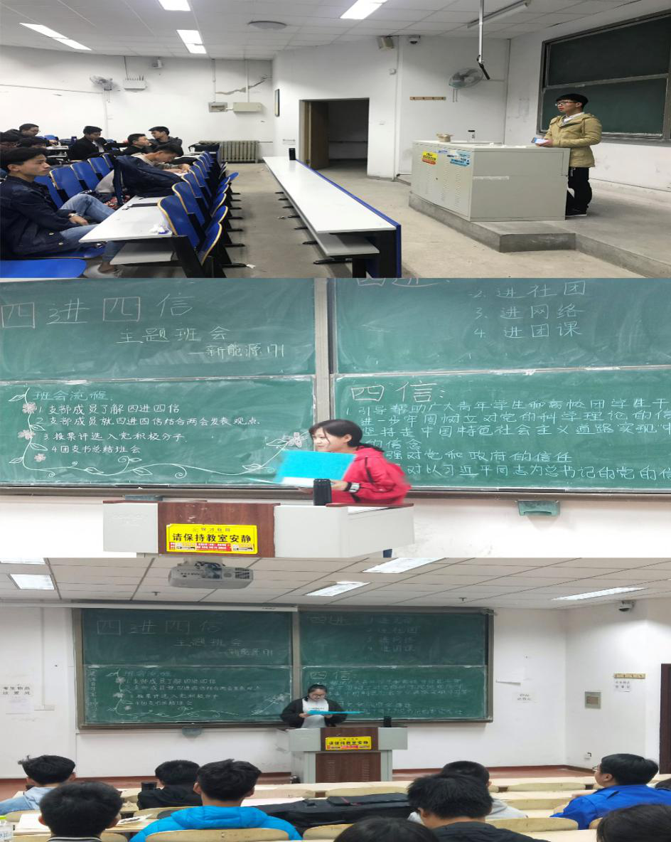 活动把学习宣传贯彻习近平新时代中国特色社会主义思想和党的十九大精神作为首要政治任务和核心工作业务,tyc7111cc太阳成集团分团委组织部扎实推进“四进四信”活动,切实以“四进”增强“四信”,以“四信”促进“四进”,各级团学组织深入开展了“四进四信”与全国两会主题班会。