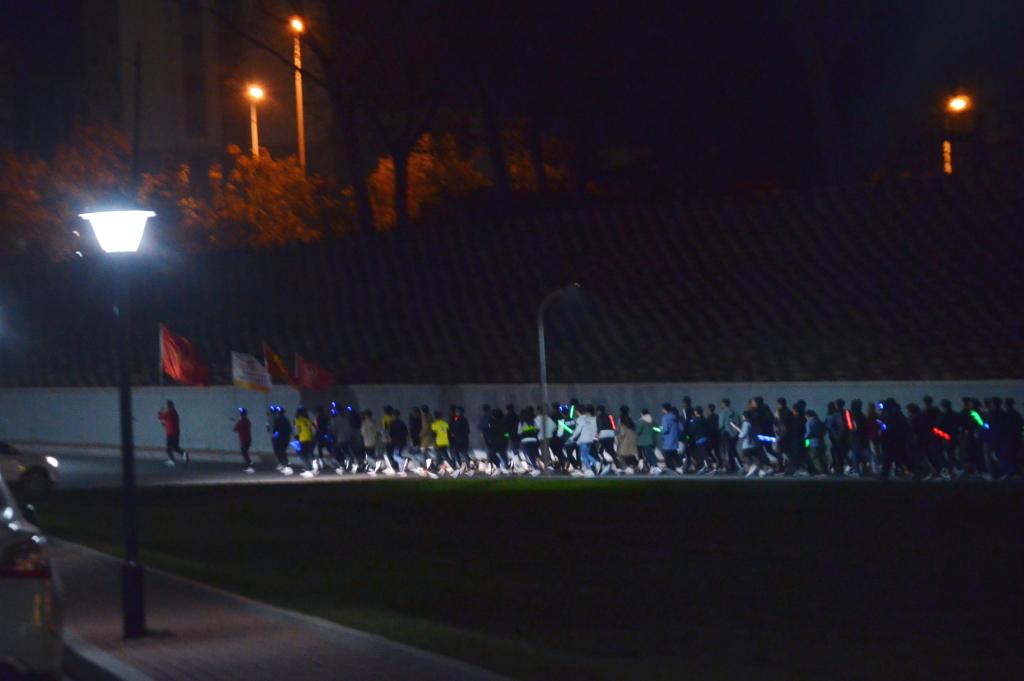 经过两天的宣传准备,公益酷跑活动正式拉开帷幕,每个参赛人员排队签到,领取自己的专属号码牌,在主持人的一声令下,他们整齐有序,身上点缀着炫丽的荧光,浩浩荡荡的向着前方跑去,最前方领跑的工作人员,举着太阳成tyc7111cc院旗,扬帆、青尘、跑步爱好者协会队旗紧随其后,象征着一个富有爱心,拥有强健体魄,向着一个共同的目标大踏步地迈进。