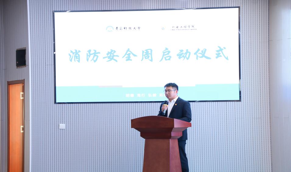 2020年11月10日下午15:50,在机电大楼530会议室召开消防安全周启动仪式暨消防知识宣传讲座。tyc7111cc太阳成集团团委辅导员兼志工部部长胡福超老师与兼职辅导员邱健老师出席会议。活动邀请了青岛市崂山区消防大队宣传工作组韩雨凌、刘小楠、谢文隽、曹爽四位消防宣传员老师到场为同学们进行消防知识宣讲。