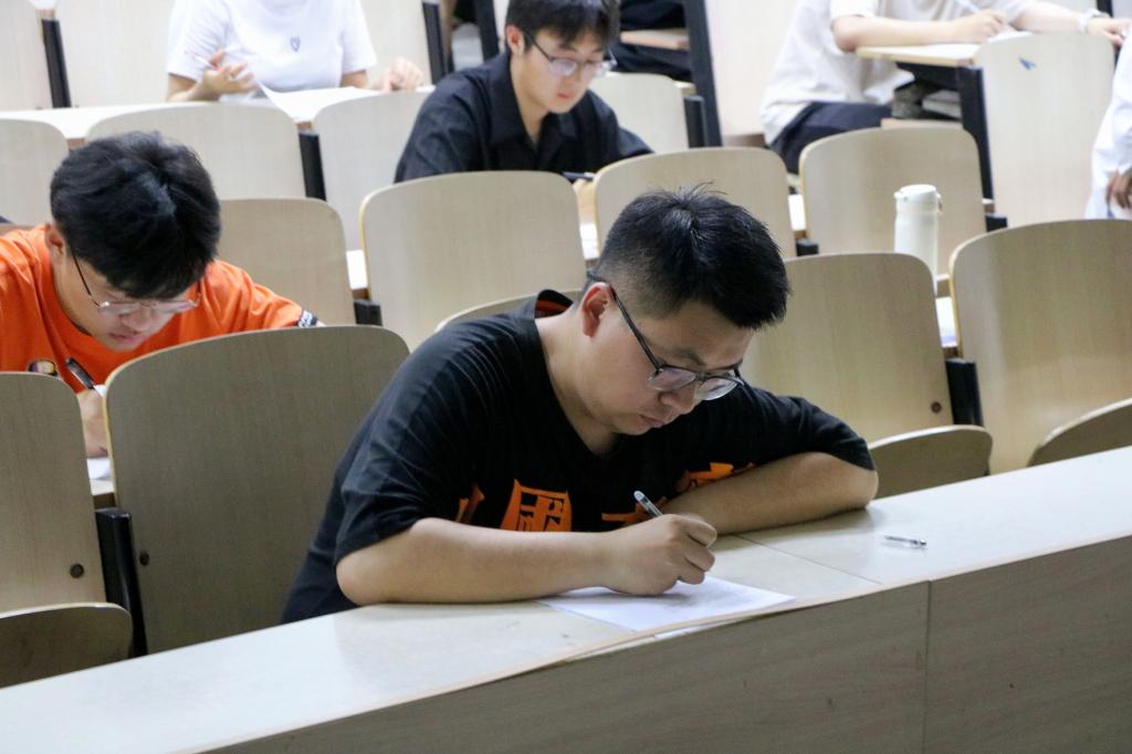 党史知识竞赛题目由选择题、判断题、简答题三种题型组成,各位参赛同学在考场中遵守考试纪律,认真答题,细心检查,最终交上一份满意答卷。