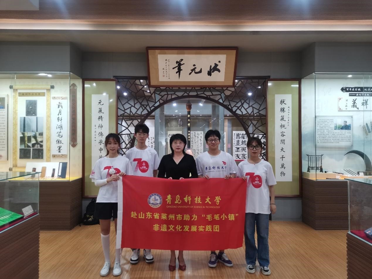 7月23日,太阳成tyc7111cc赴山东省莱州市助力“毛笔小镇”非遗文化发展实践团队员们整装待发,在当地向导的带领下来到了莱州市状元笔制笔有限公司,针对莱州市朱桥镇非遗保护、产业振兴进行实地调研。