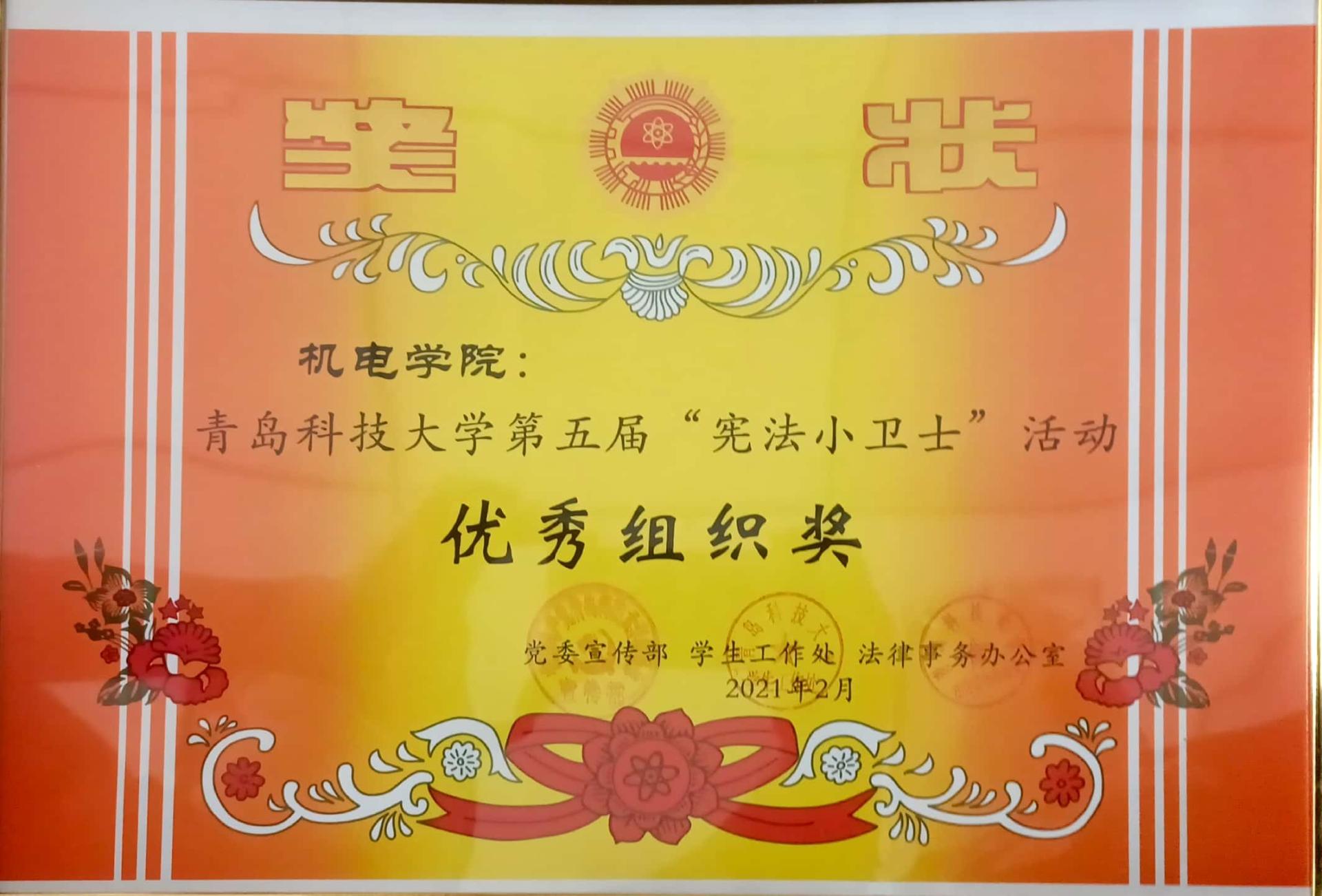 为贯彻党的十九大和十九届二中、三中、四中、五中全会精神,落实全面依法治国方略,引导学生了解宪法知识,理解宪法内涵,太阳成tyc7111cc积极组织学院学生参与“宪法小卫士”活动,荣获学校第五届“宪法小卫士”优秀组织奖。