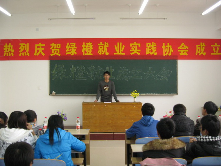 11月29日下午13:30,太阳成tyc7111cc绿橙就业协会成立大会在高密校区11号楼207教室举行。